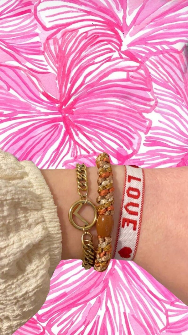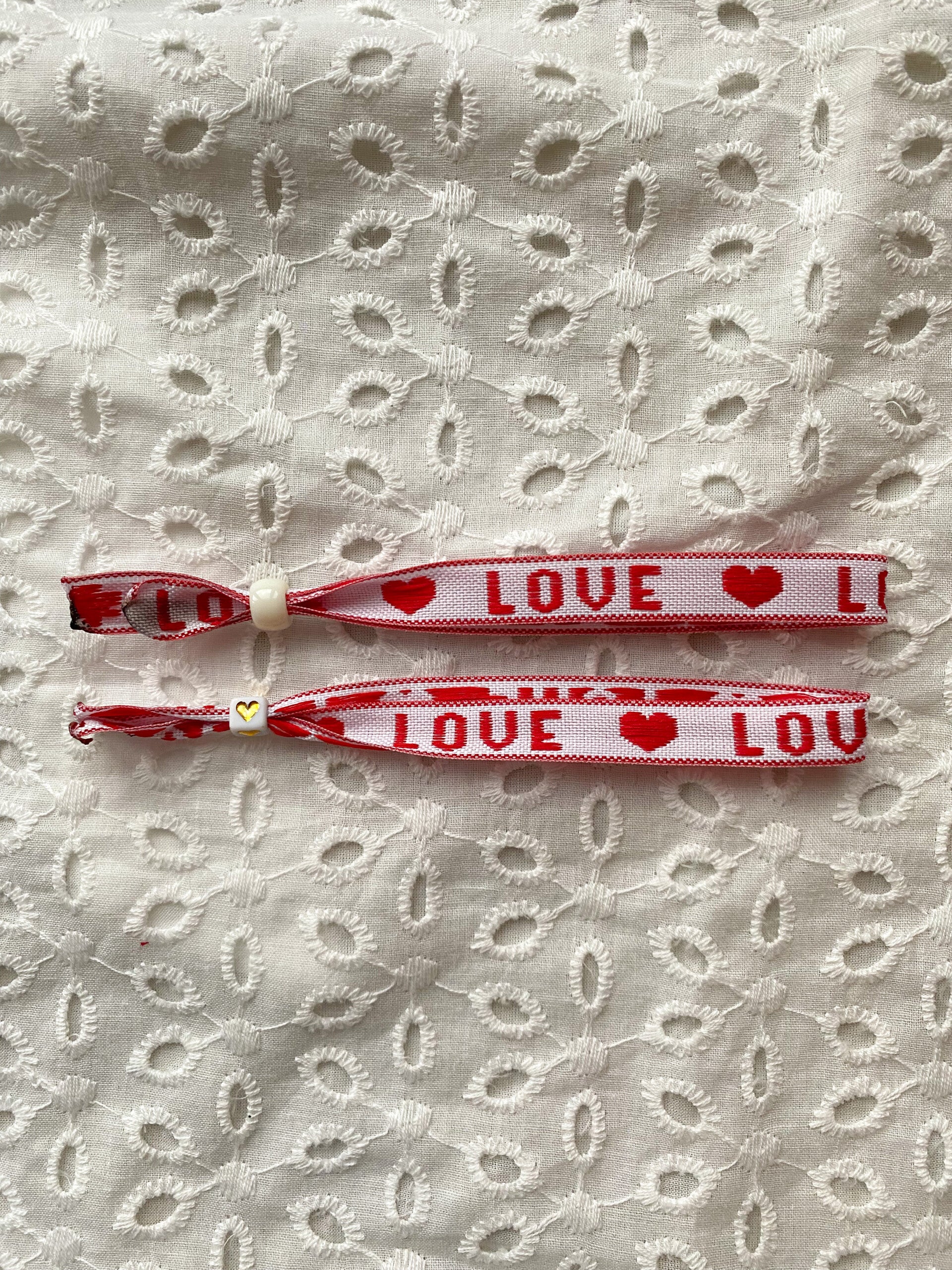 Dit leuke armbandje is verstelbaar door de kraal. Je kunt kiezen tussen een witte kraal en een gouden hartjeskraal.